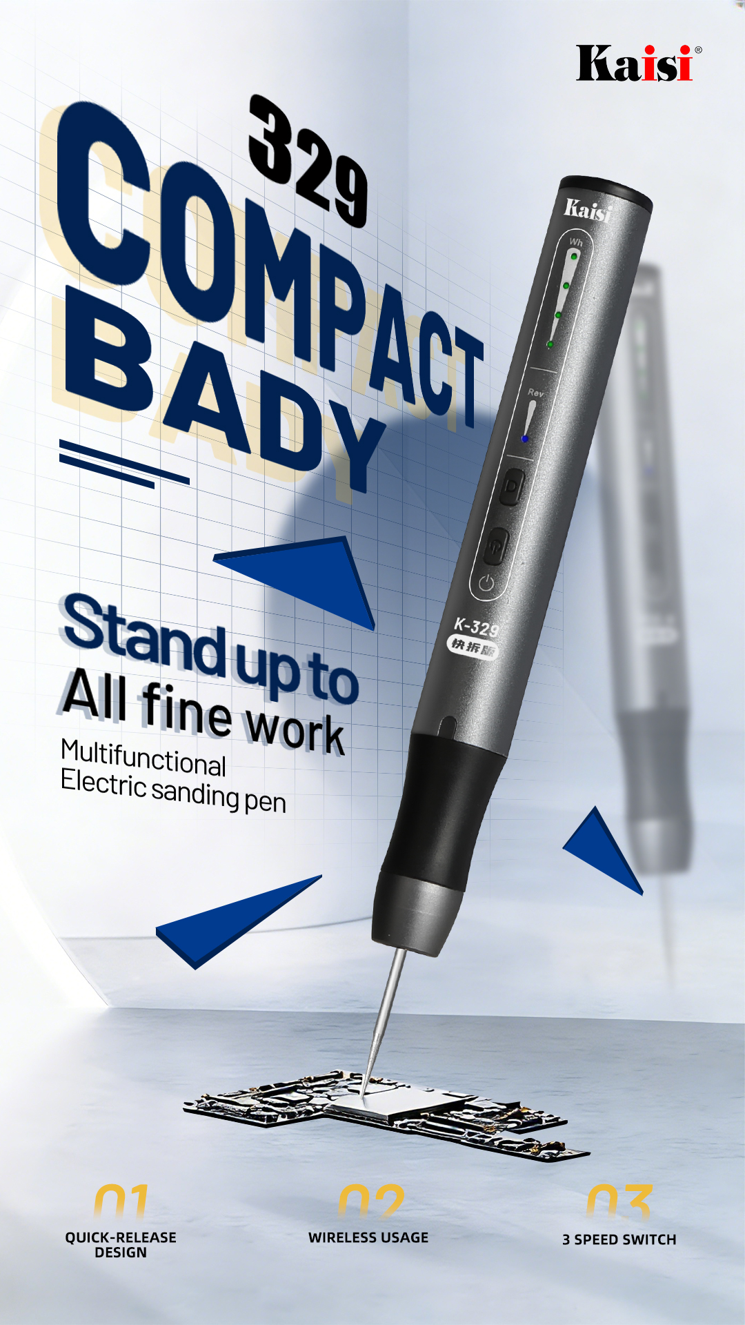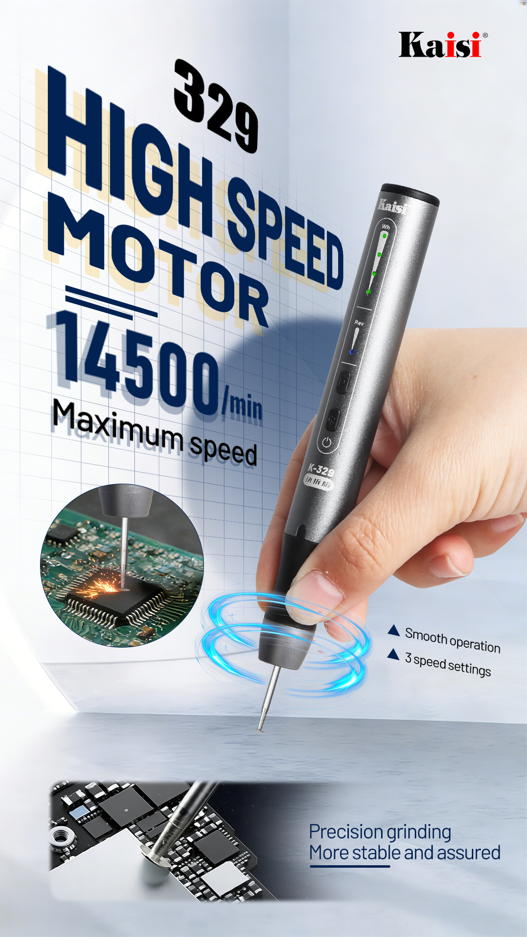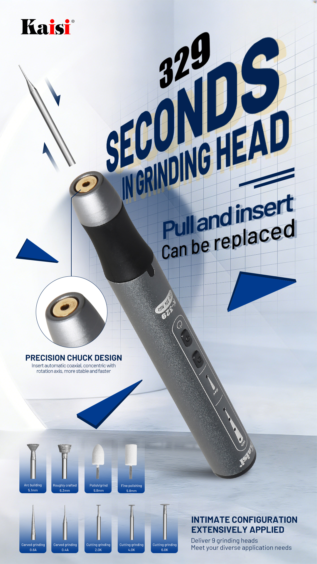The Kaisi 329 Precision Grinding Pen enhances precision work with its streamlined design, efficiently unlocking new possibilities for maintenance and creation! Ergonomic grip design, closely fitting the texture of the hand and the curvature of the finger joints, providing good anti-slip and control, making it easy to operate for long periods without getting tired.